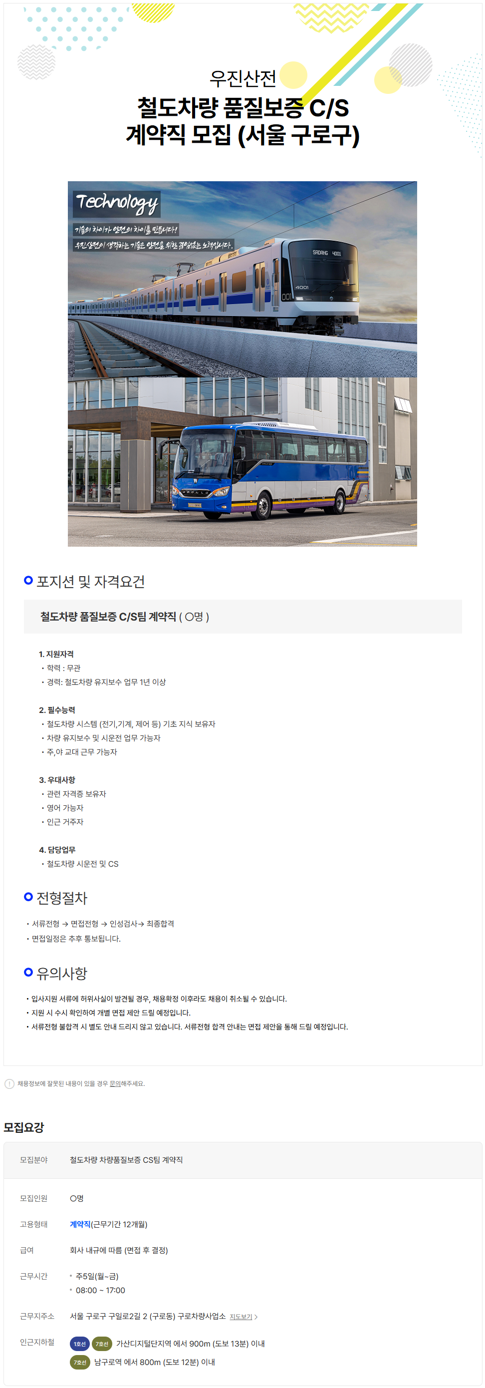 회사소개 사업분야 연구개발 홍보관 인재채용 사회공헌 KOR ENG CEO인사말 경영이념 비전 및 핵심가치 인증서 연혁 사업장 안내 철도차량 전기버스 스마트 에너지 연구소 소개 연구개발 실적 영상 카다로그 공지사항 인재상 복리후생 채용안내 채용공고