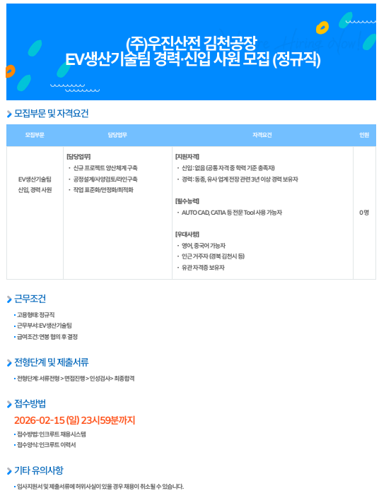 회사소개 사업분야 연구개발 홍보관 인재채용 사회공헌 KOR ENG CEO인사말 경영이념 비전 및 핵심가치 인증서 연혁 사업장 안내 철도차량 전기버스 스마트 에너지 연구소 소개 연구개발 실적 영상 카다로그 공지사항 인재상 복리후생 채용안내 채용공고